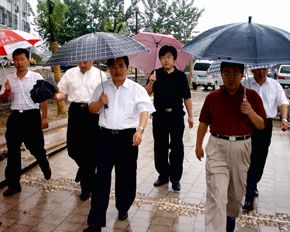 集團(tuán)公司近年來承建的大型重點(diǎn)工程引起了各級領(lǐng)導(dǎo)及媒體的廣泛關(guān)注,尤其是今年承建的張面河綜合整治工程更是得到了社會各界的高度贊譽(yù),國家、省、市等領(lǐng)導(dǎo)多次到工程現(xiàn)場視察參觀指導(dǎo)工作。 ![]() 2004年8月山東省副省長趙克志視察指導(dǎo)工作 左一為集團(tuán)公司董事長徐鵬強(qiáng) 左四為集團(tuán)公司總經(jīng)理朱九洲 |
