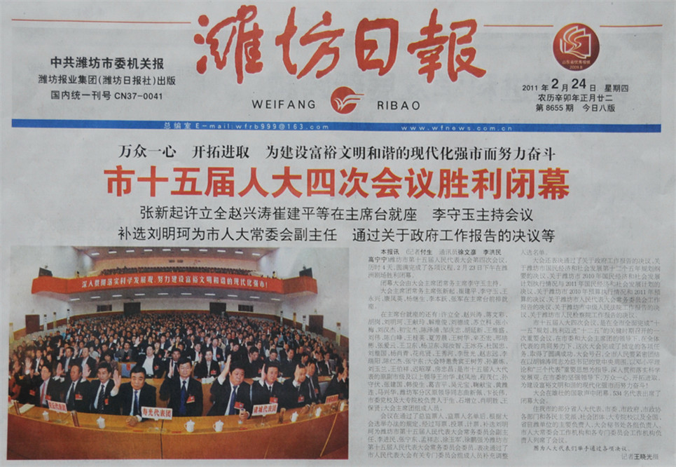 日勝利閉幕。會議補選集團公司董事長、黨委書記徐鵬強同志為濰坊市第十五屆人民代表大會常務委員會委員。