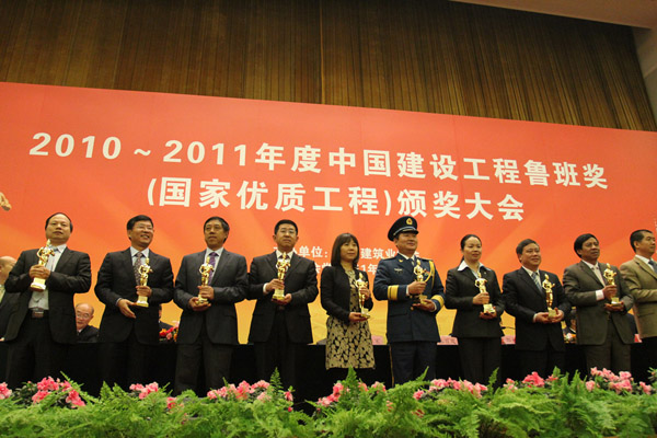 11月7日,由中國建筑業協會主辦的2010-2011年度中國建設工程魯班獎(國家優質工程)頒獎大會在北京人民大會堂隆重舉行。集團公司董事長徐鵬強以及魯班獎工程——北川人民醫院承建單位、參建單位代表胡曰俊、于社強參加頒獎大會。參加本次大會的有各省、自治區、直轄市建筑業協會(聯合會、施工行業協會),有關行業建設協會和其他相關單位的負責人以及獲得魯班獎的承建單位和參建單位代表共計1500余人。