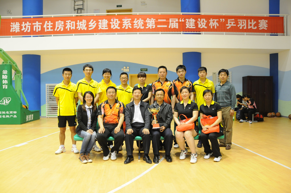 4月26日至28日,濰坊市建設系統迎“五一”第二屆“建設杯”乒羽比賽在濰坊藝術中心舉行,共有來自市建設系統的12支代表隊、百余名運動員參加了乒乓球和羽毛球的比賽。集團公司派出的乒羽代表隊獲得團體總分第一名。4月28日下午,在藝術中心籃球館舉行了頒獎儀式和閉幕式,市建設局副局長李振龍、杜天斌出席閉幕式并為獲獎運動員以及代表隊頒獎。集團公司監事會主席、黨委副書記、紀委書記滕忠斌參加閉幕式并代表集團公司領取團體比賽第一名獎杯。