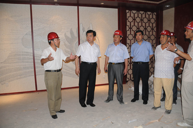 7月16日上午,市委書記許立全在市委副書記王獻(xiàn)玲、副市長(zhǎng)夏芳晨、王樹華及市直有關(guān)部門負(fù)責(zé)同志陪同下到會(huì)展中心視察。集團(tuán)公司董事長(zhǎng)徐鵬強(qiáng)全程陪同許立全視察。 許立全在會(huì)議中心西側(cè)下車,查看了展覽中心和會(huì)議中心外裝情況、廣場(chǎng)和園林綠化情況,隨后登上會(huì)議中心二層察看了內(nèi)裝并重點(diǎn)察看了千人宴會(huì)廳的內(nèi)裝情況,對(duì)會(huì)展中心的接待能力進(jìn)行了了解。許立全聽(tīng)取了市建設(shè)局副局長(zhǎng)張文在現(xiàn)場(chǎng)關(guān)于工程建設(shè)基本情況的匯報(bào),對(duì)工程建設(shè)情況表示了滿意。