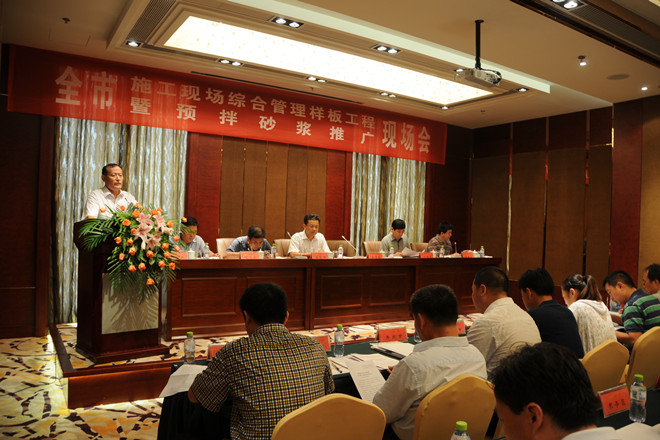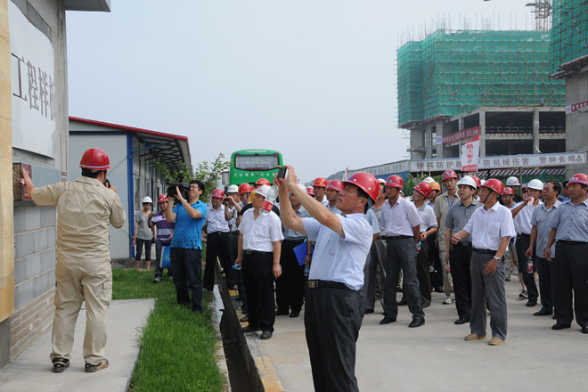 7月25日上午,由濰坊市建筑工程管理處組織的“全市施工現(xiàn)場(chǎng)綜合管理樣板工程暨預(yù)攪拌砂漿推廣現(xiàn)場(chǎng)會(huì)”在集團(tuán)公司第四分公司承建的金融廣場(chǎng)舉行。來(lái)自濰坊各縣市區(qū)、市屬開(kāi)發(fā)區(qū)建工處(局)分管主任(局長(zhǎng))、有關(guān)科室負(fù)責(zé)人;全市房屋建筑施工總承包一級(jí)企業(yè)和部分二級(jí)企業(yè)分管經(jīng)理,部分預(yù)攪拌砂漿生產(chǎn)企業(yè)代表共計(jì)120余人參加了現(xiàn)場(chǎng)會(huì)。集團(tuán)公司總工程師張連悅出席現(xiàn)場(chǎng)會(huì)并做專題經(jīng)驗(yàn)介紹,集團(tuán)公司質(zhì)量技術(shù)部、生產(chǎn)安全部、資產(chǎn)管理部等有關(guān)部門(mén)相關(guān)人員參加了上午的現(xiàn)場(chǎng)會(huì)。