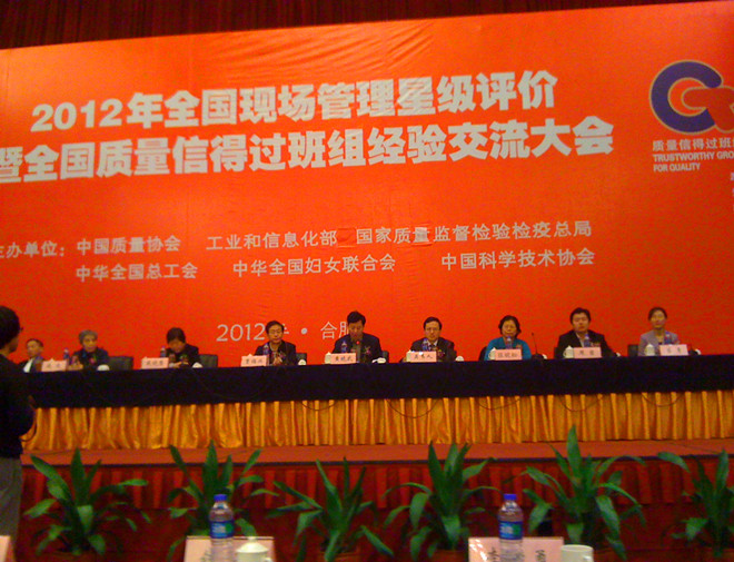 2012年12月6日,2012年全國(guó)現(xiàn)場(chǎng)管理星級(jí)評(píng)價(jià)暨全國(guó)質(zhì)量信得過班組經(jīng)驗(yàn)交流大會(huì)在合肥召開。裝飾分公司會(huì)展中心項(xiàng)目部因其在QC工作中的突出表現(xiàn)而被中國(guó)質(zhì)量協(xié)會(huì)、中華全國(guó)總工會(huì)、中華全國(guó)婦女聯(lián)合會(huì)、中國(guó)科學(xué)技術(shù)協(xié)會(huì)聯(lián)合授予全國(guó)質(zhì)量信得過班組稱號(hào)。