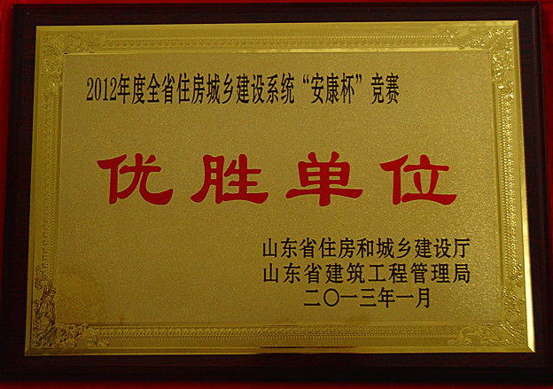 近日,山東省住房和城鄉(xiāng)建設廳、山東省建筑工程管理局發(fā)布2012年度山東省建設系統(tǒng)“安康杯”競賽活動評選結果,集團公司榮獲2012年度全省住房城鄉(xiāng)建設系統(tǒng)“安康杯”競賽優(yōu)勝單位稱號。