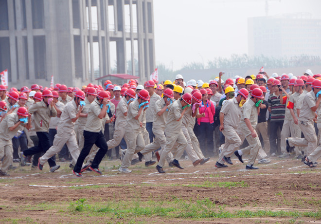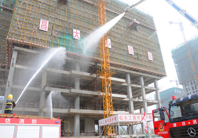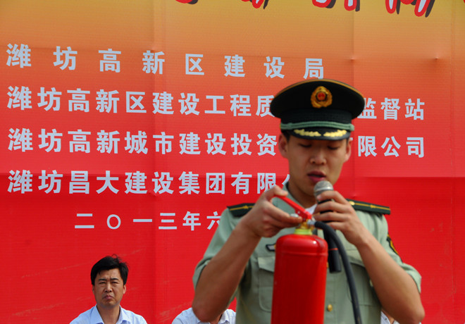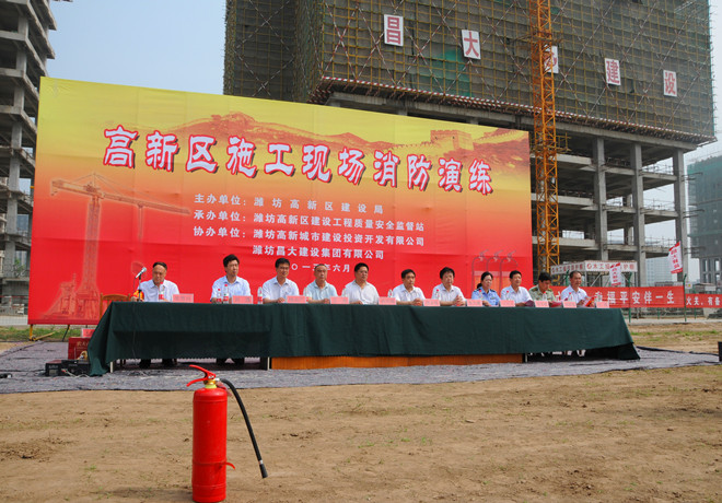 為切實推進施工現(xiàn)場消防安全管理,提高全員消防應(yīng)變能力,以實際行動開展好“六月安全月”活動,2013年6月5日上午,集團公司在高新區(qū)中央商務(wù)區(qū)施工現(xiàn)場組織了大型消防演練活動。來自各基層單位分管生產(chǎn)的經(jīng)理、工程管理人員,施工現(xiàn)場專職安全員,演練現(xiàn)場三個分公司的全體管理人員和勞務(wù)專業(yè)隊伍,高新區(qū)工程建設(shè)、總承包、監(jiān)理單位以及勞務(wù)分包單位代表等近1000人參加了演練活動。