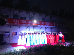 2016年5月27日晚,濰坊市總工會“中國夢?勞動美職工藝術團下基層慰問演出”在集團自行開發、建設中的泰和東郡工程現場辦公區進行。演出從晚上七點半開始,在一個半小時的時間里,這個40人的藝術團共演出包括獨唱、合唱、舞蹈、朗誦等節目在內的12個節目。在盛夏即將到來的夜晚,讓職工藝術沁潤施工現場的勞動者。