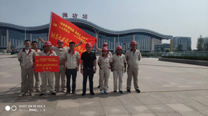 2020年7月10日上午,由濰坊市總工會和市住建局主辦的“戰疫情、賽技能、強素質、當能手、助推‘十大攻堅戰’2020年市級重大項目百日勞動競賽”在濰坊市站南廣場片區舉行啟動儀式。市人大常委會副主任、市總工會主席張新強,濰城區委書記趙學坤,市住建局黨組書記、局長王教法等出席啟動儀式并參觀八建公司、鳶港公司承建的濰坊火車站南站房站前廣場工程。