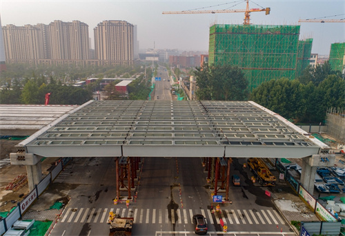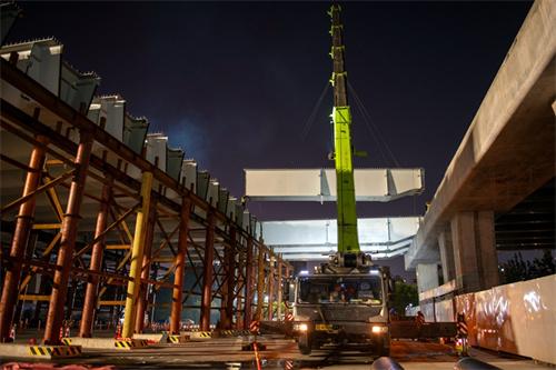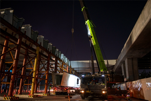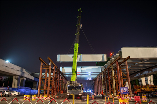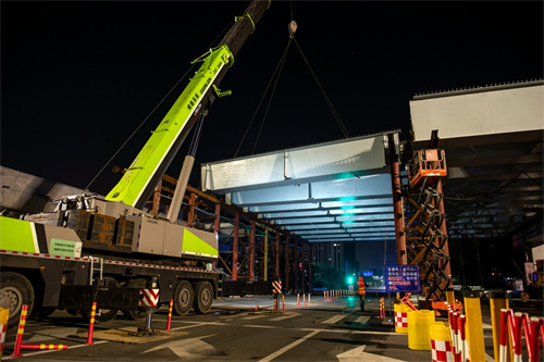 奮戰兩個晚上完成路口鋼箱梁吊裝為市民提供最大便捷——集團寶通街快速路東方路、金馬路路口鋼箱梁吊裝完成