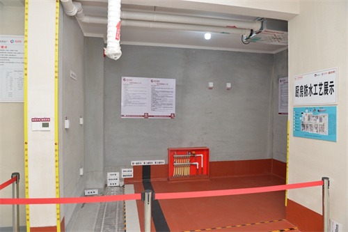 觀摩會現場,項目部人員結合現場樣板,對地下室、外墻、屋面及三小間防水做法和具體施工工藝向觀摩領導和嘉賓進行了詳細講解。對于該項目的樣板做法,省住建廳和市級住建部門的領導與專家均給予了高度評價,并已掛省廳網站全省云觀摩,同時在全市范圍推廣應用。